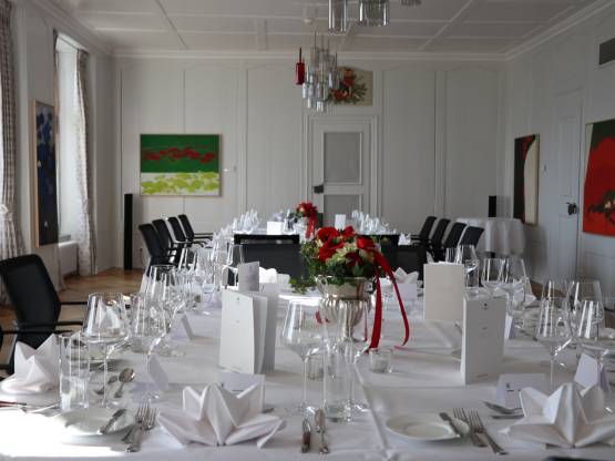 Die Schlossberg Thun AG vermietet das Bundesratszimmer oder die Lounges an Private, Firmen und Institutionen für Sitzungen, Seminare, Workshops, Foren, Veranstaltungen, Bankette, Feiern - wir unterstützen und entlasten Sie in der Organisation, indem wir Sie von A bis Z begleiten.